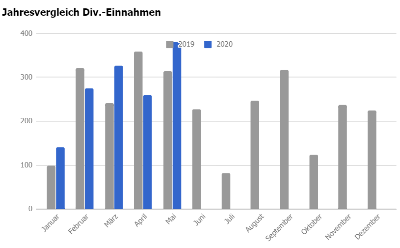 Insgesamt bin ich mit dem Mai sehr zufrieden. Die Ausschüttungen der Unternehmen kamen ganz normal. Bis jetzt hat auch nur TangerOutlet seine Dividende komplett gestrichen.