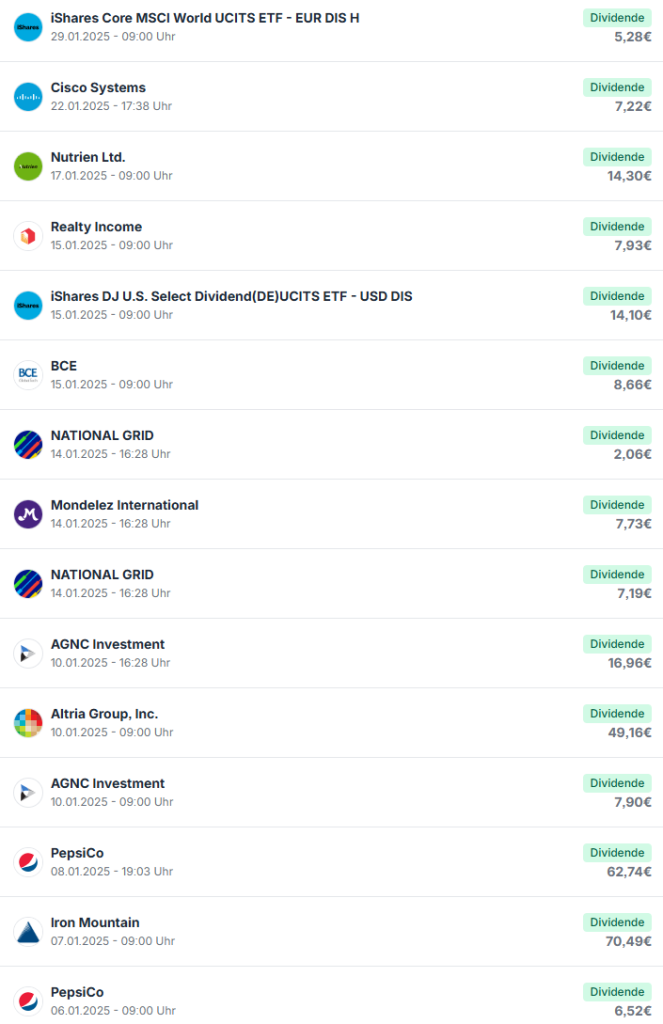 An Dividenden erhielt ich das folgende
