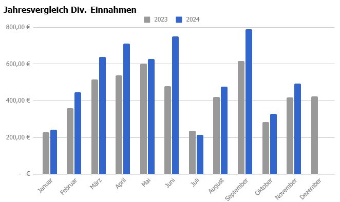 Auch diesen Monat gab es reichlich Ausschüttungen, mit denen ich es schaffte die Vorjahreswerte zu erreichen, auch wenn ich 2 Werte nicht mehr im Depot habe.