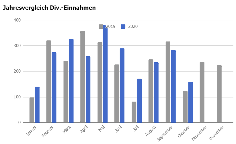 Der Oktober 2020 war erfolgreicher als der August und September, bei denen es weniger Einnahmen als in 2019 gab. Diesen Monat lag das Plus bei ~ 27 %.