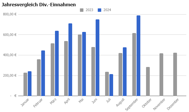 Was ein Wahnsinnsmonat. Die Dividenden sprudelten nur so ein, die Einnahmen stiegen auf fast 800 Euro und das ohne manchen Zahler aus dem vergangenen September.