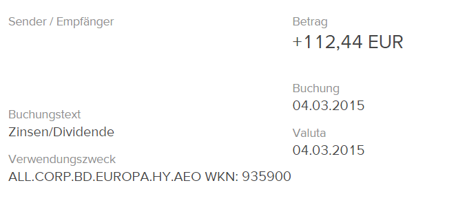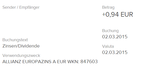 Als erstes gab es diesen Monat am 2. März die Ertragsgutschriften der beiden Fonds.