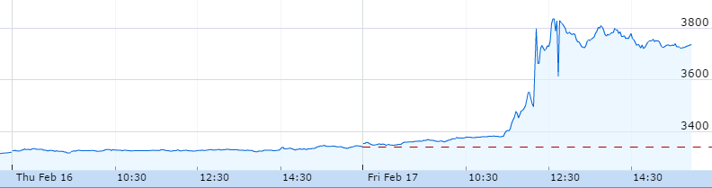 und stiegen leicht über 3.800 GBp (>12 % Steigerung. Die Werte von KraftHeinz stiegen dagegen „nur leicht“ an.