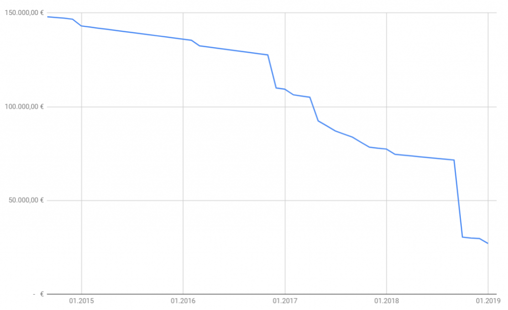Wenn man bedenkt das ich vor etwas mehr als 4 Jahren, noch 148.000 € Schulden hatte, ist doch schon eine sehr deutliche und für mich sehr erfreuliche Situation.