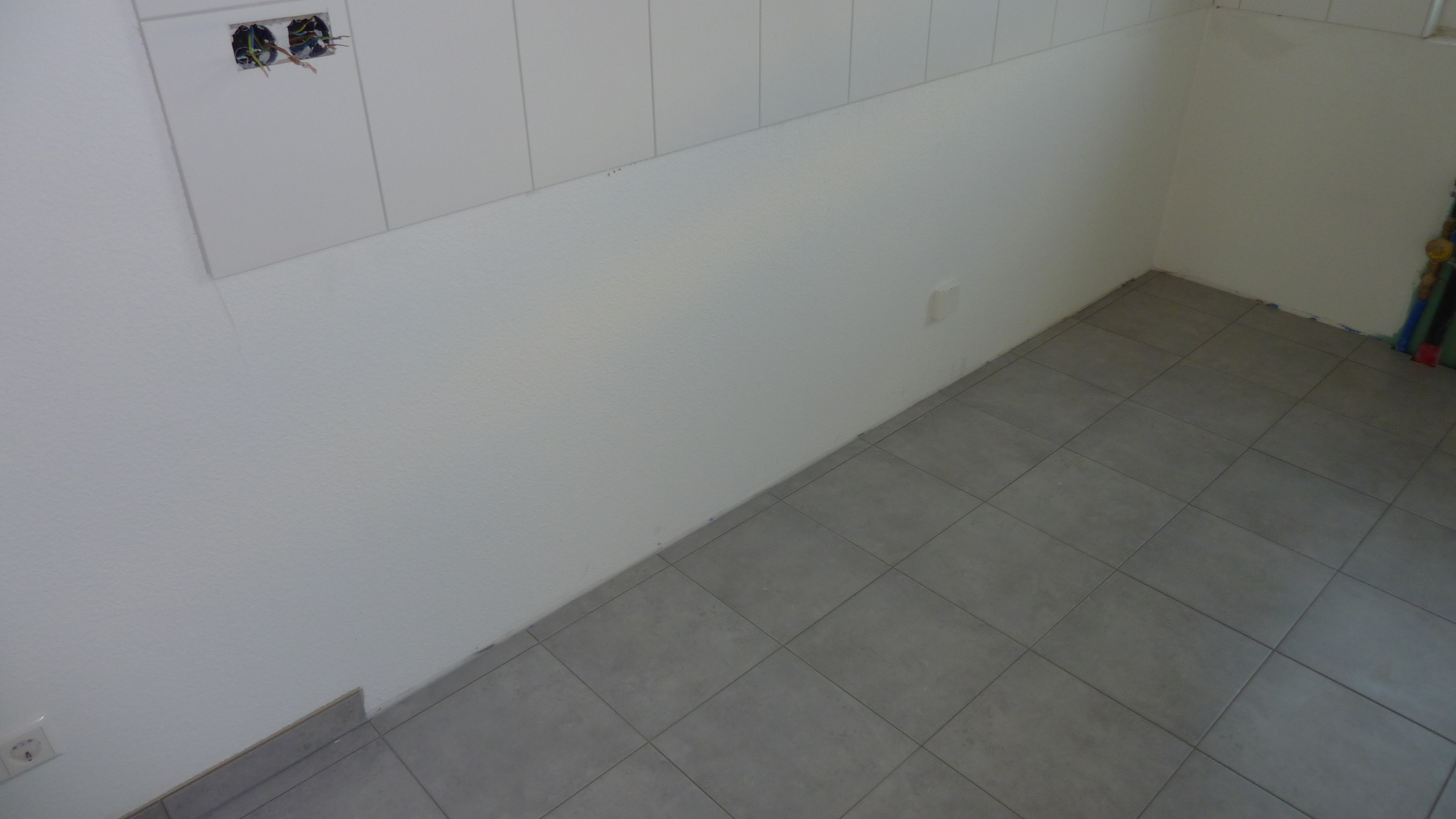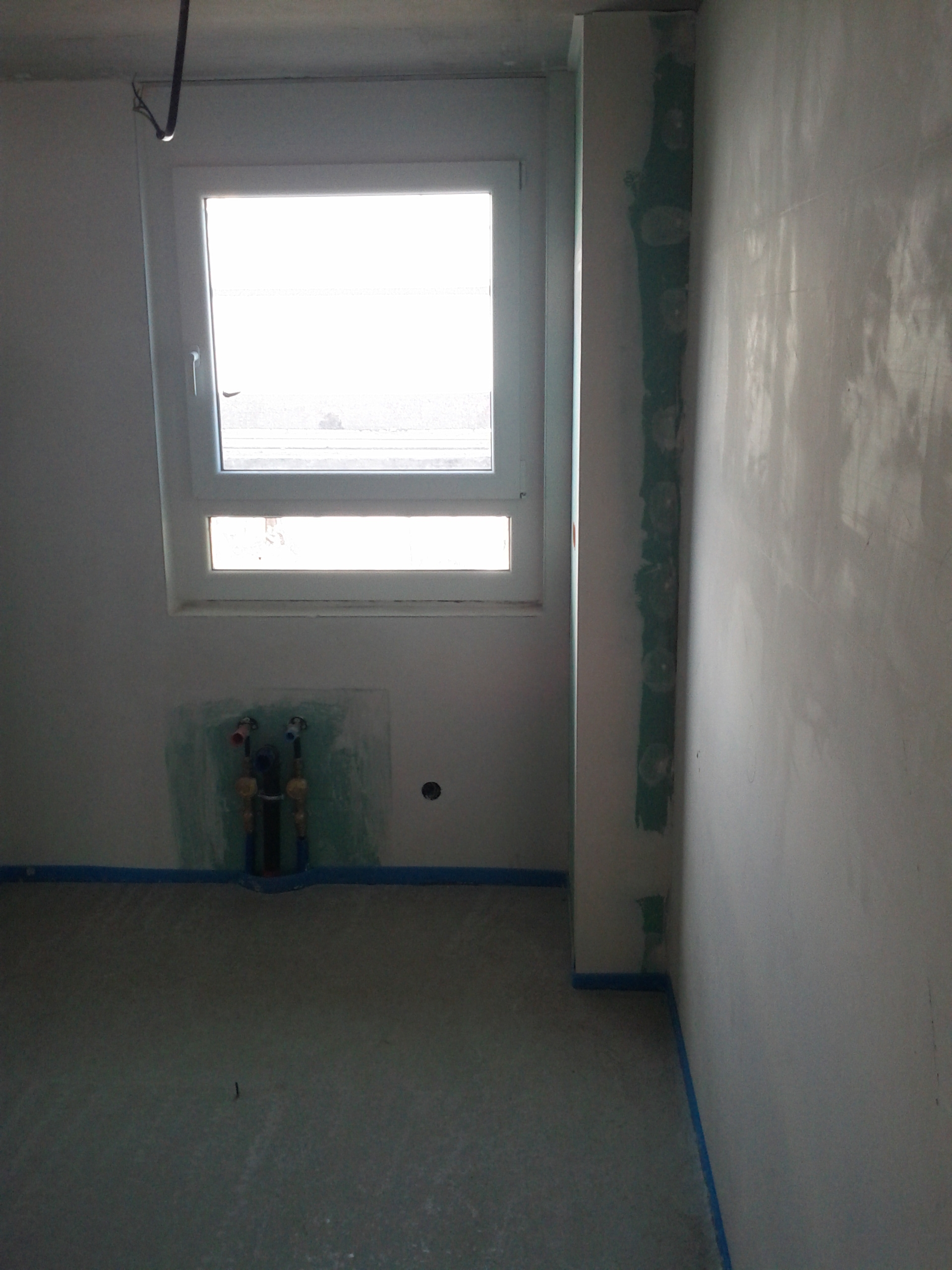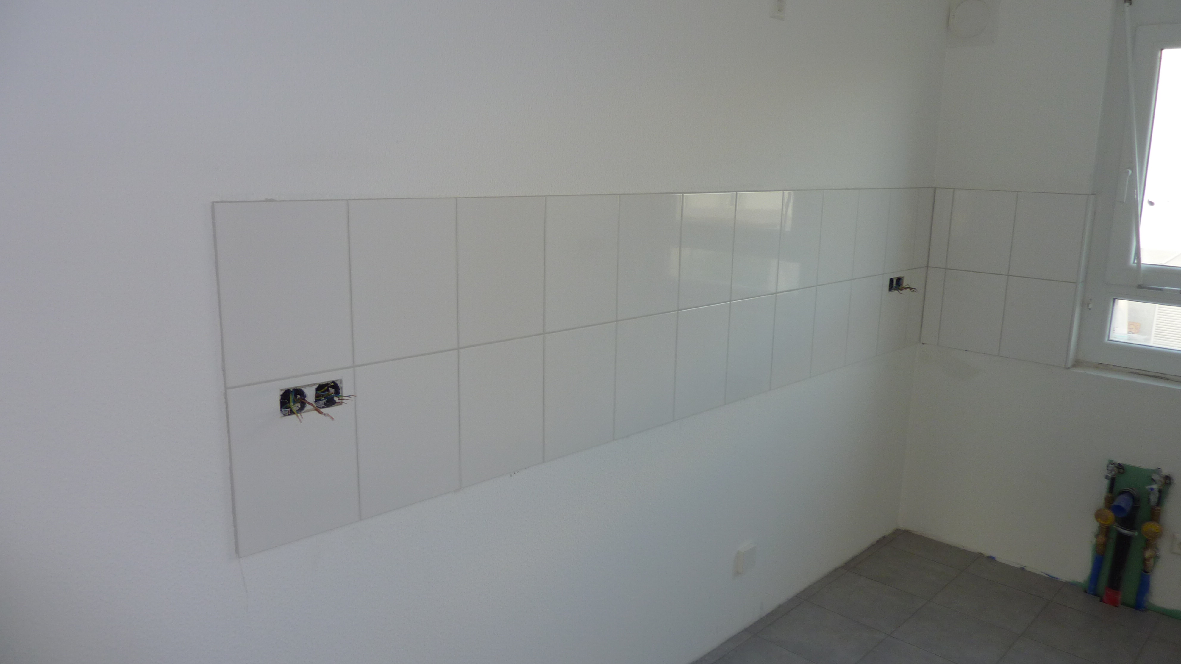 Nun ja, er war das letzte Gewerk. Nur der Elektriker machte die Dosen danach noch komplett fertig. Aber ab jetzt war die Küche eigentlich einbaubereit.