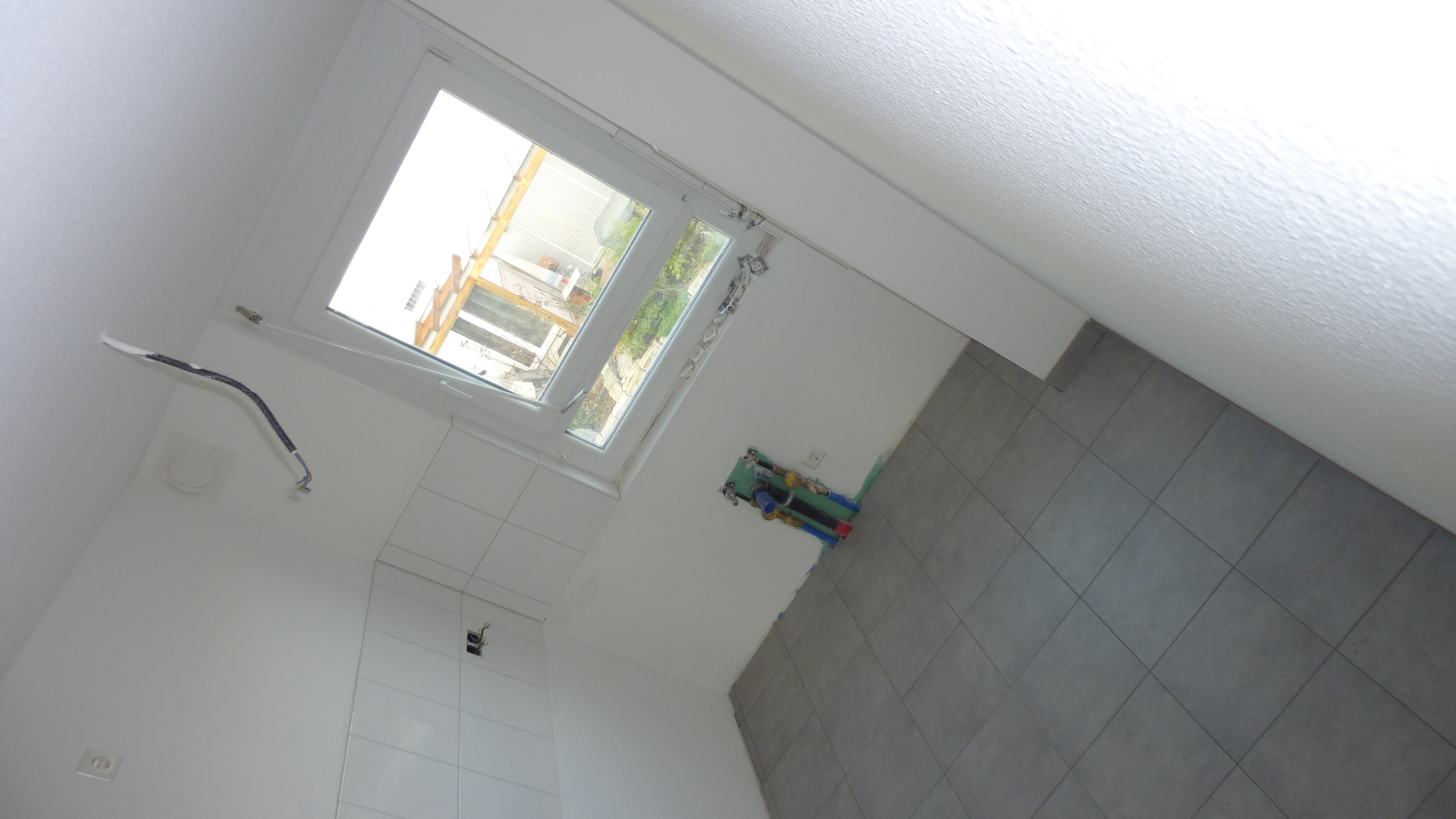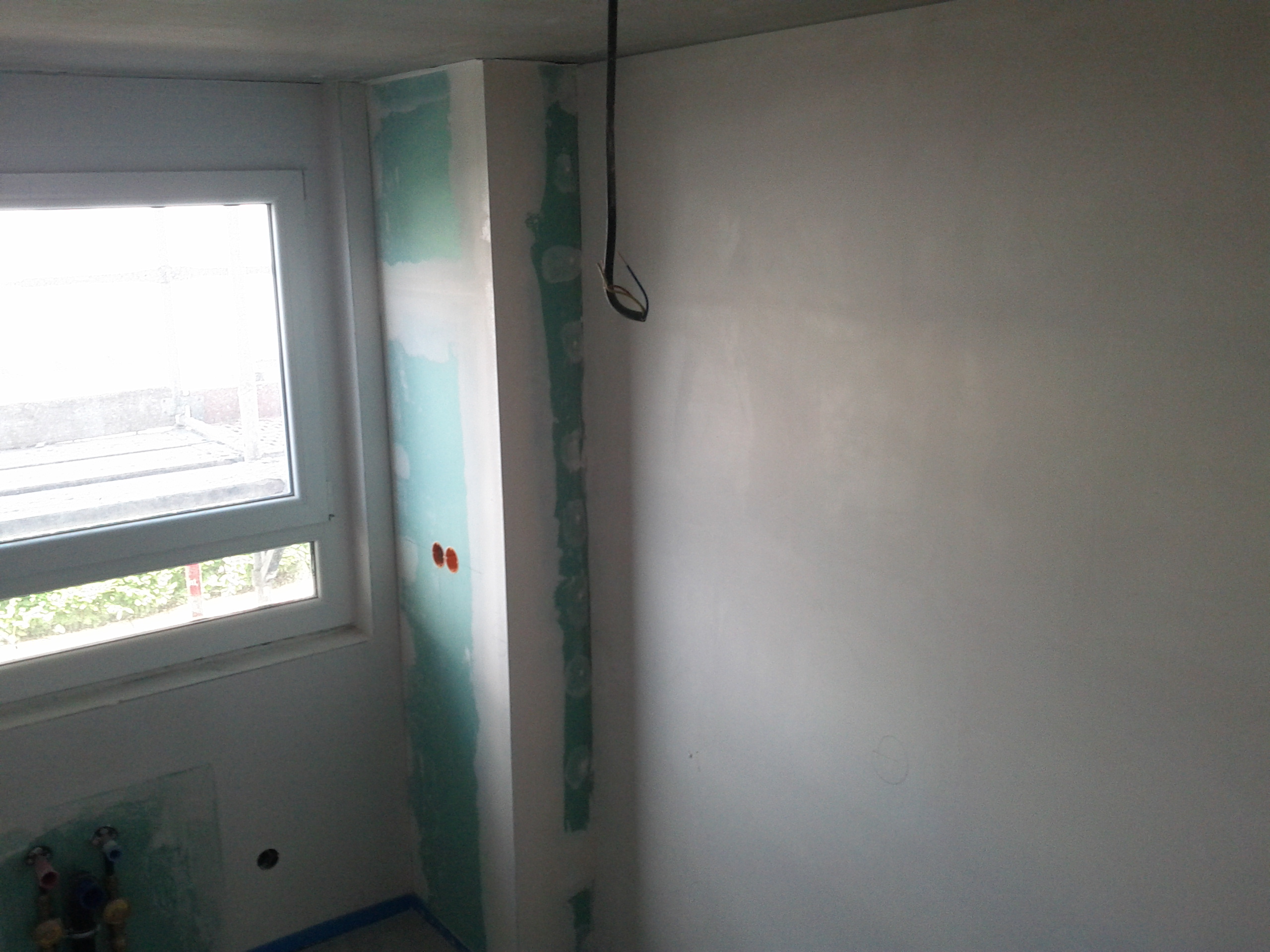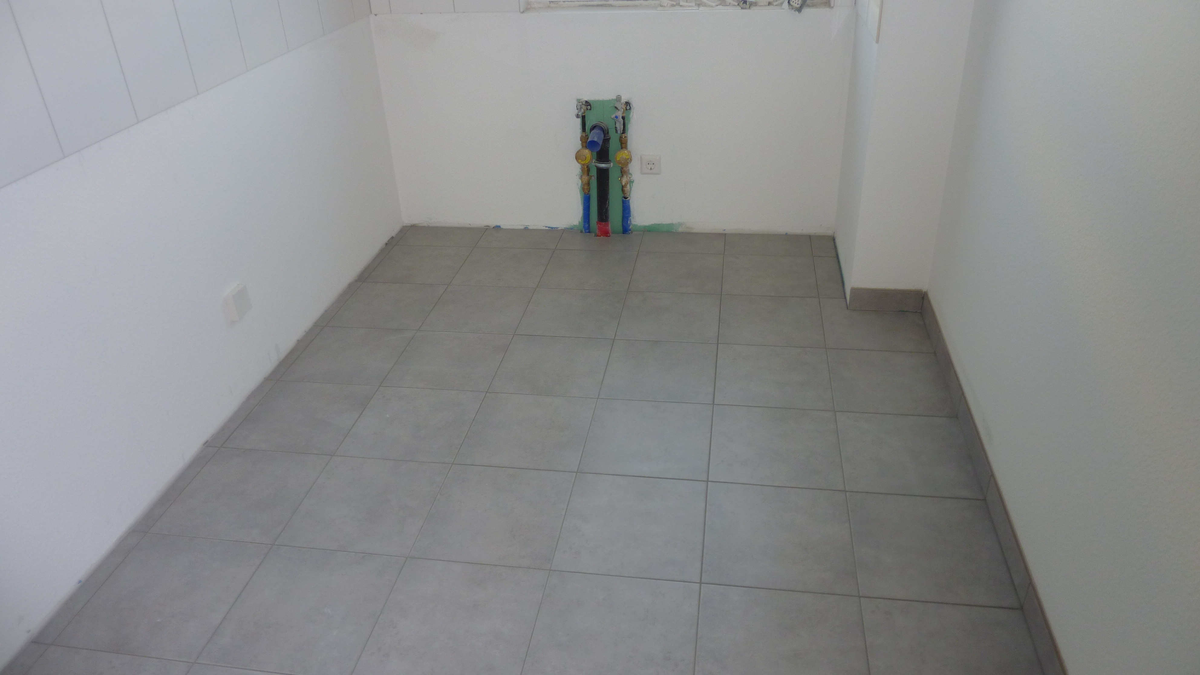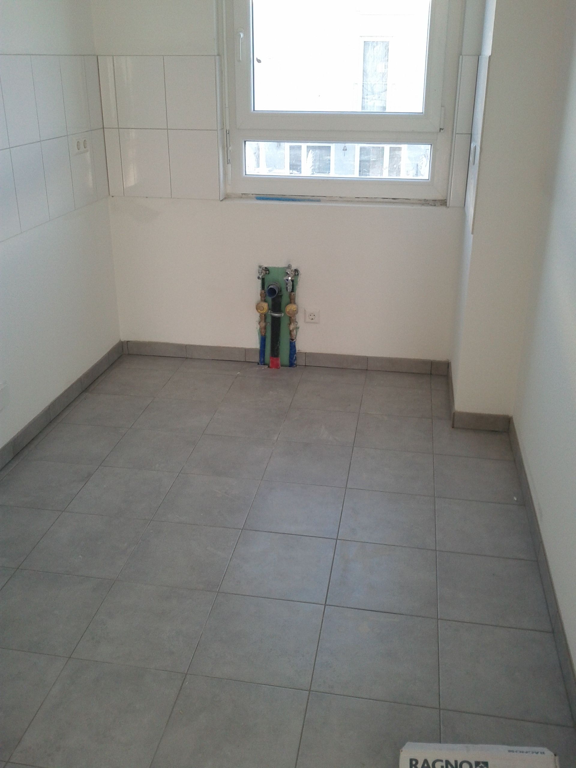 Nun ja, er war das letzte Gewerk. Nur der Elektriker machte die Dosen danach noch komplett fertig. Aber ab jetzt war die Küche eigentlich einbaubereit.