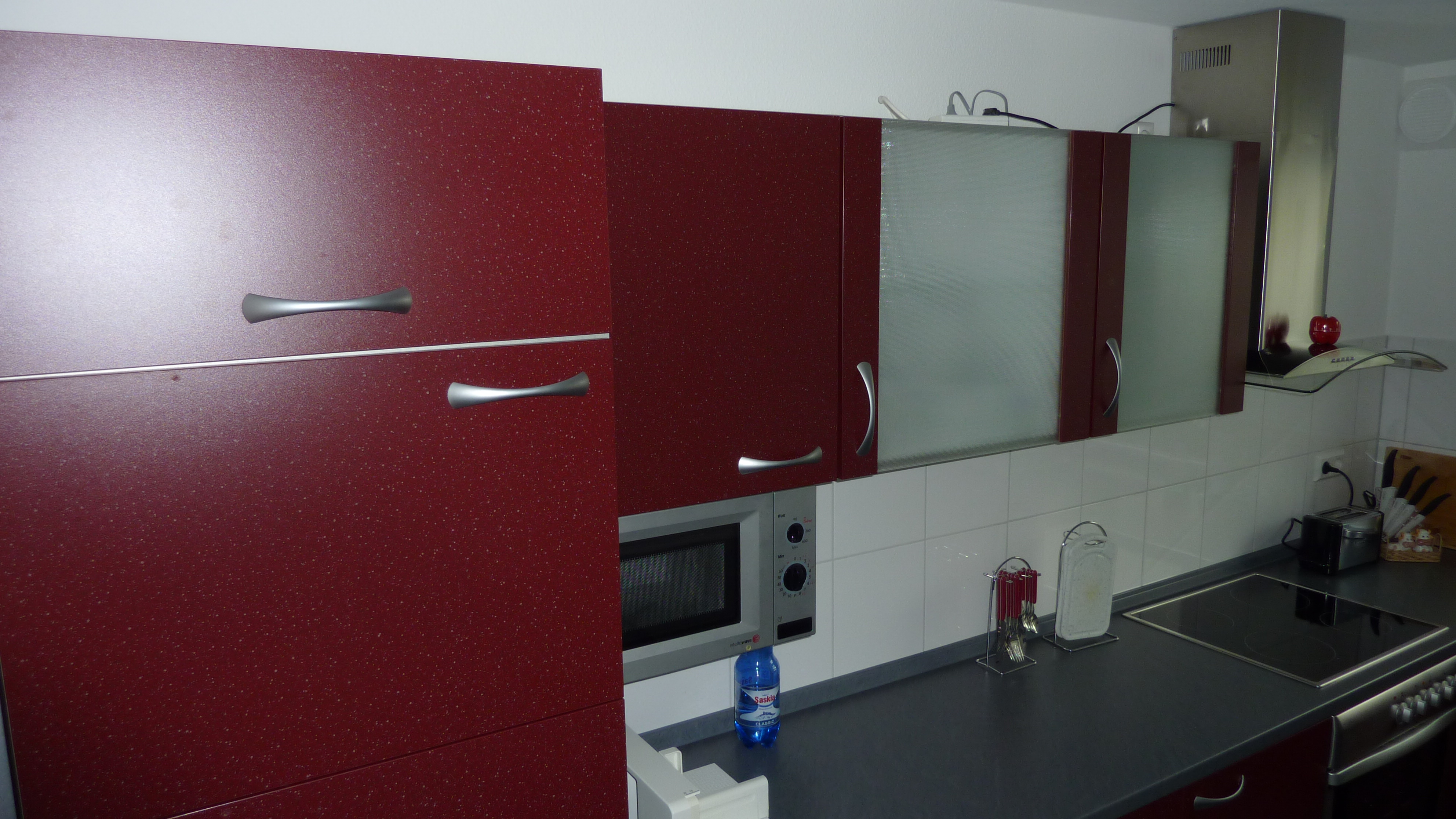 Desweiteren habe ich 2 Schränke von IKEA und neue Fronten bei Hornbach erworben. Zum Glück gab es die Fronten noch, nachdem die Küche ja auch schon einige Jahre auf dem Buckel hatte. Die Küche war seinerzeit von Pino mit der Frontfarbe Kometrot. Die Arbeitsplatte hat der Globus beigesteuert.